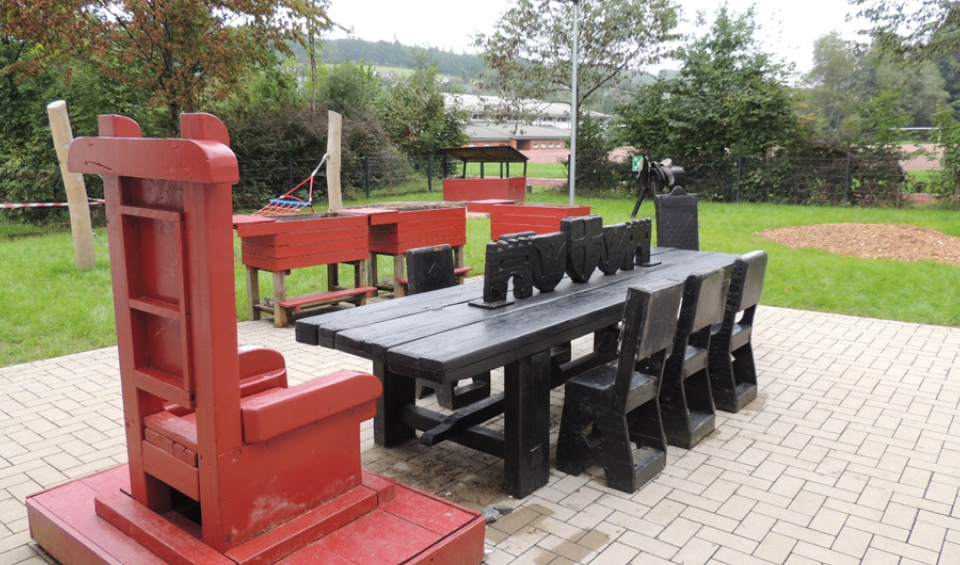 Seit Oktober 2022 haben die Kinder und das Team der Kita Hannes ihre sichere „Ritter-Burg“. Aus dem Modulbau im Tal sind sie jetzt am Hang und Waldrand. Von hier hätte der legendäre Hans Hübner, von dem die Kita sich den Namen geborgt hat, den besseren Blick gehabt. Nicht nur nach draußen, sondern auch drinnen stimmt das „Gelände“. Denn alle drei Gruppen sind auf einer Ebene!